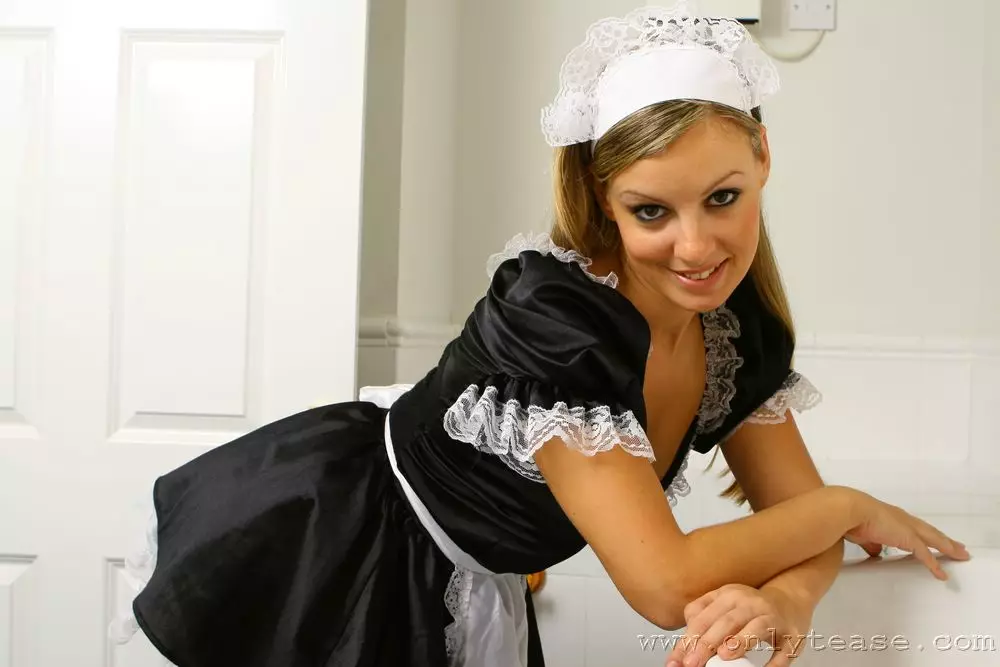 Игривая малышка в чулках Tanya K снимает свою черную униформу и красное белье и собирается принять душ — Tanya K