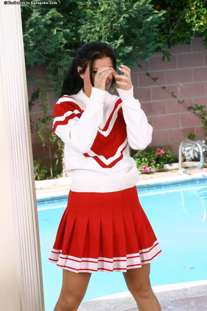 Черлидерша Taryn Thomas выставила свою выбритую киску у бассейна после стриптиза — Taryn Thomas