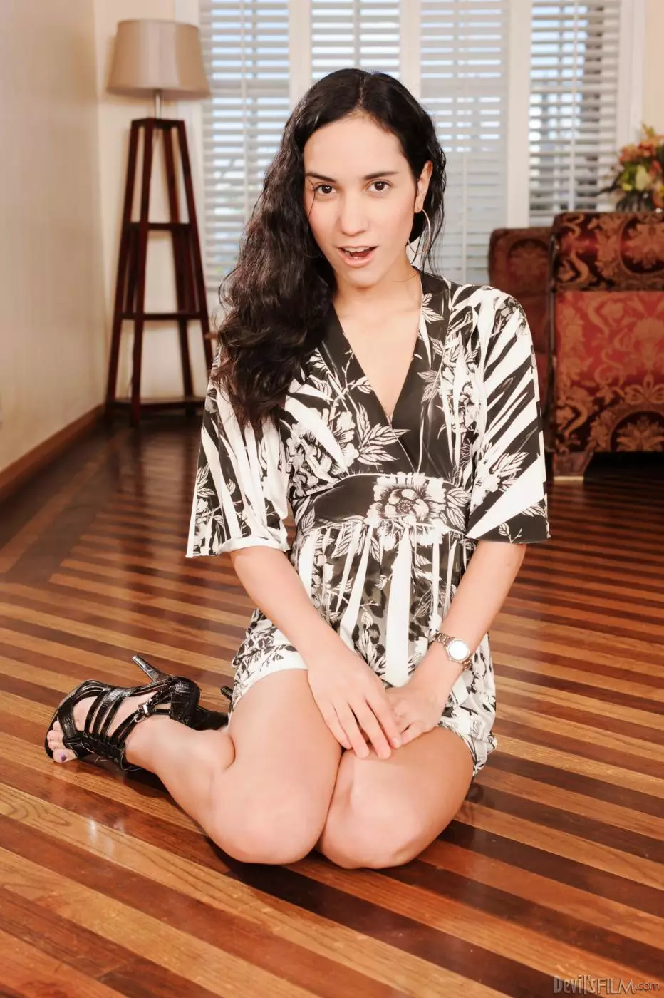 Развратная латинка Tia Cyrus эротично позирует перед камерой, показывая трусики под юбкой — Tia Cyrus