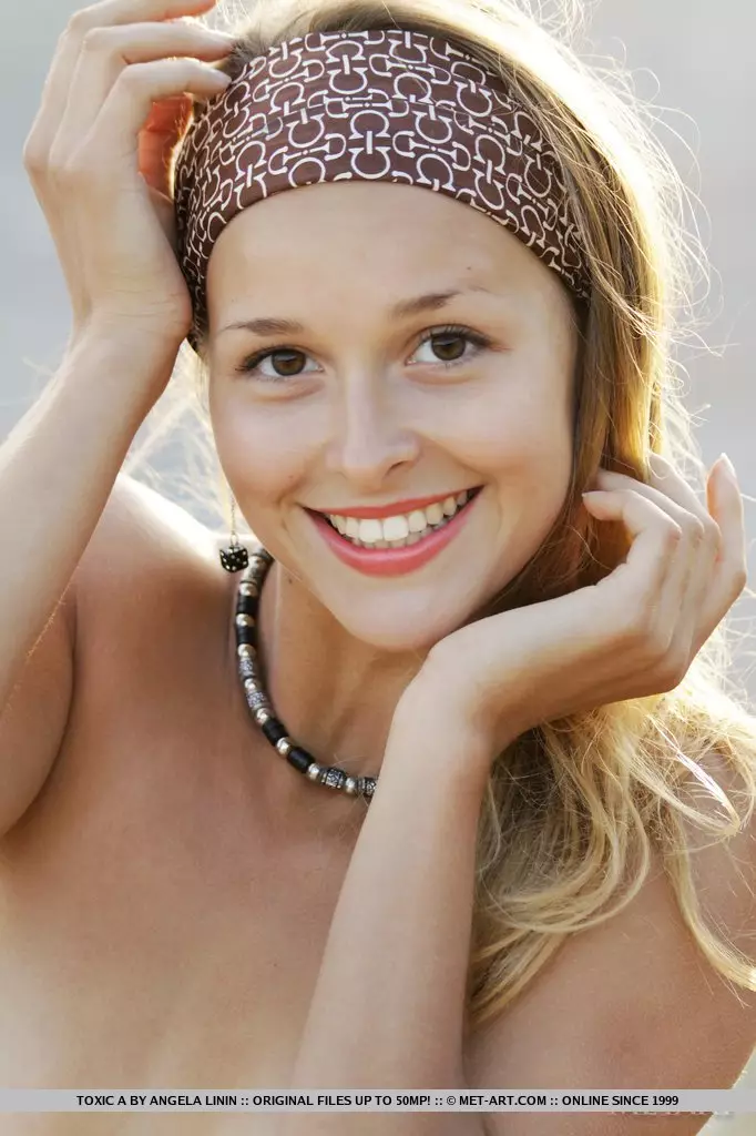 Соблазнительная молоденькая блондинка Toxic A позирует на природе с оранжевой легкой тканью — Toxic A
