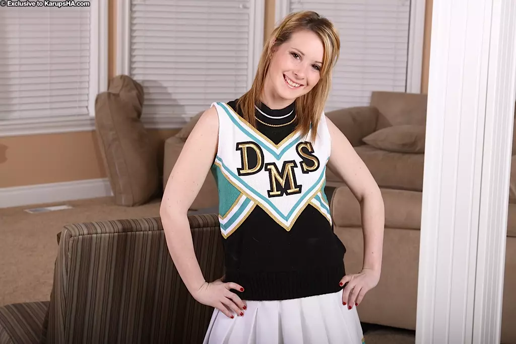 Выбритая малолетка Tweety Valentine снимает форму черлидерши а потом свои девственные белые трусики — Tweety Valentine