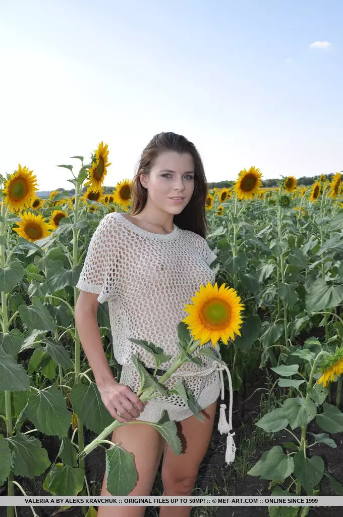 Обнаженное тело милой девочки-подростка Valeria A выглядит невероятно на подсолнечном поле — Valeria A
