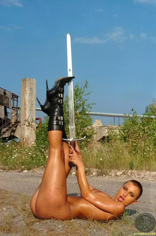 Голая коротко стриженная девушка-воин - Veronica Vanoza, показывает большие сиськи и длинные ноги — Veronica Vanoza