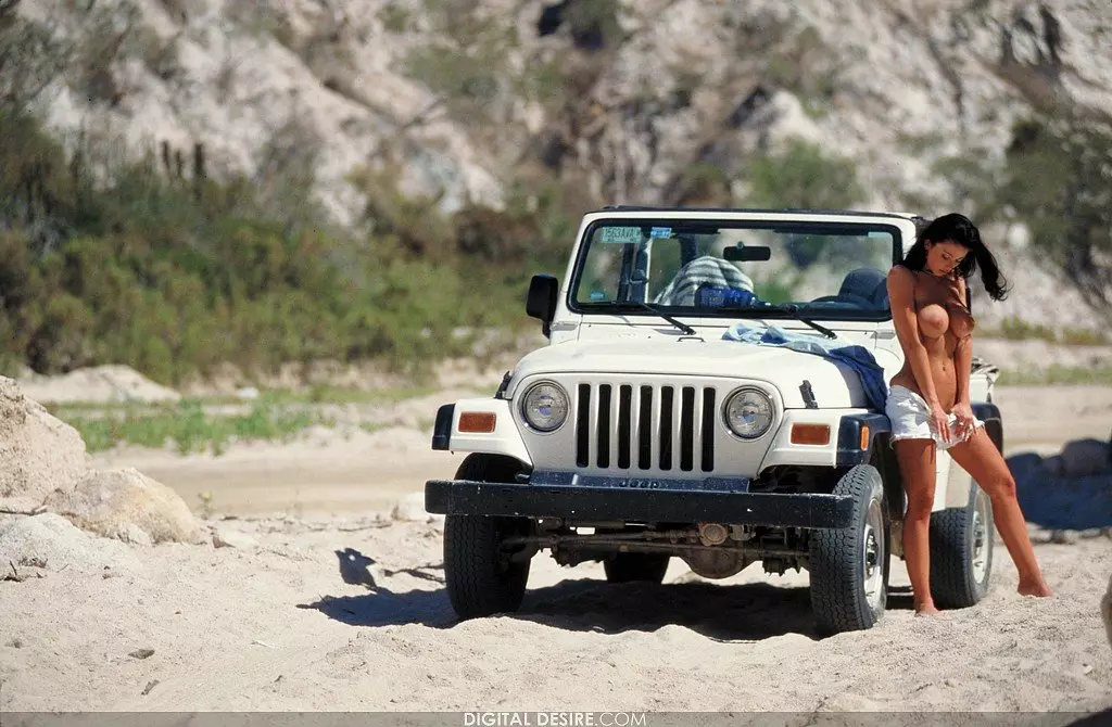 Прекрасная сучка с огромными сиськами Veronica Zemanova раздевается догола около машины посреди пустыни — Veronica Zemanova