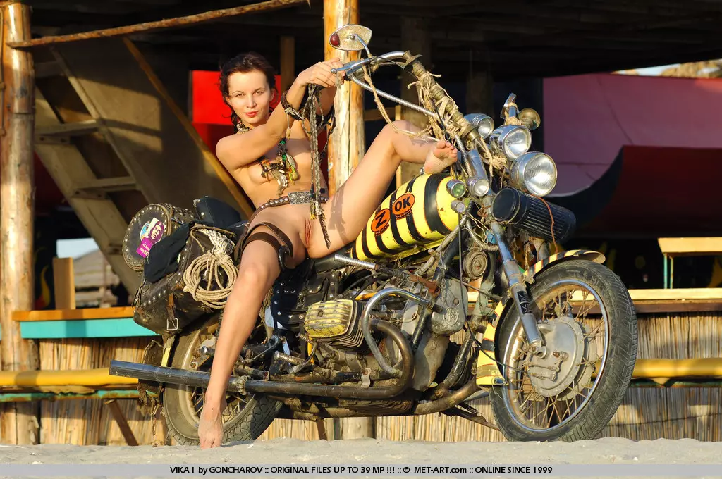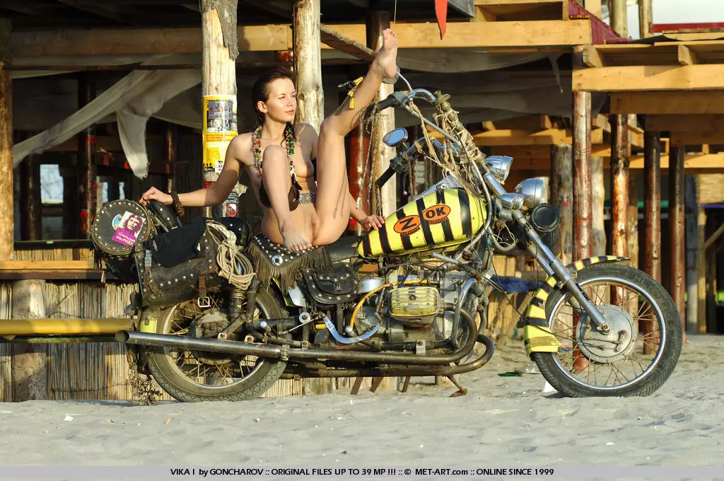 Непристойная, агрессивная Vika I позирует рядом с мотоциклом — Vika I