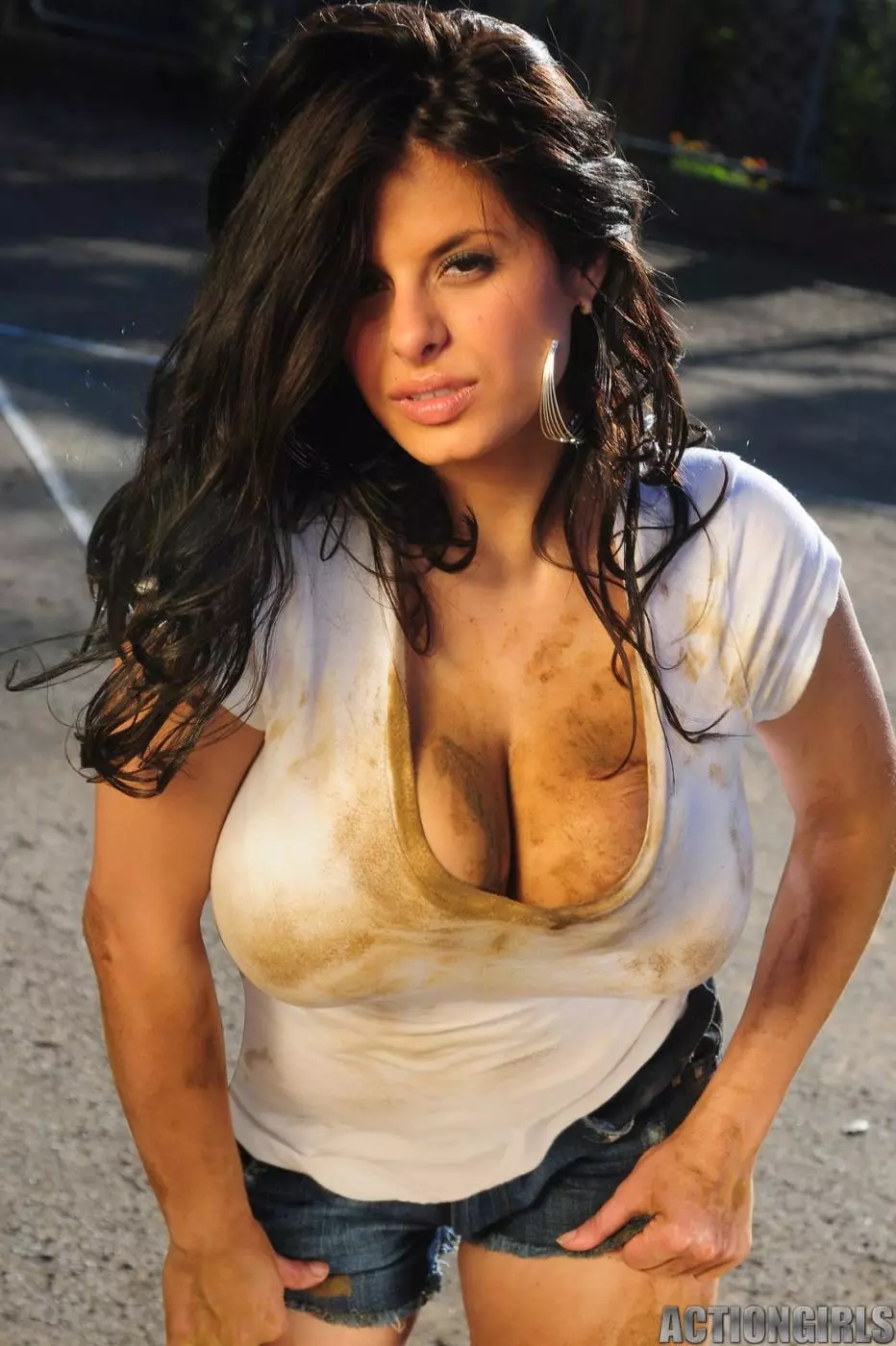 Очаровательная брюнетка Wendy Combattente показала гигантские титьки, сняв тугую футболку — Wendy Combattente