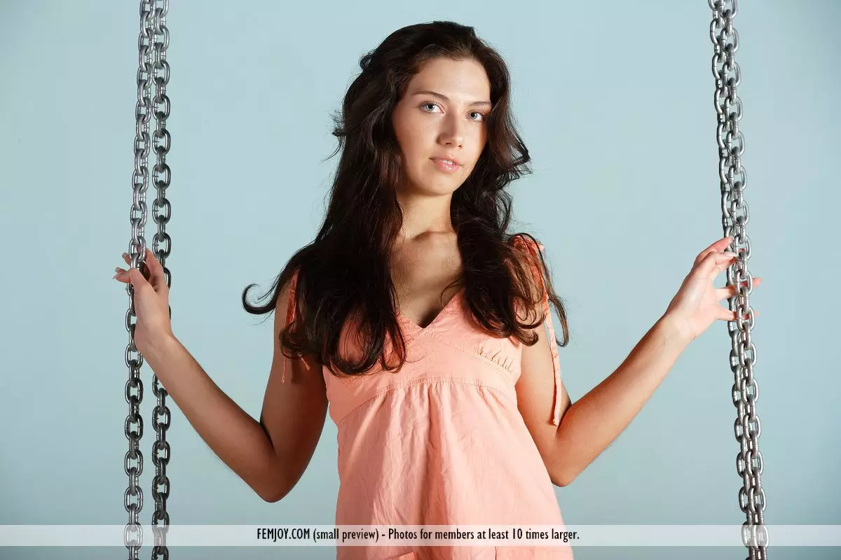 Брюнетка на качели - Zhanna B, позирует и показывает восхитительное голое тело — Zhanna B