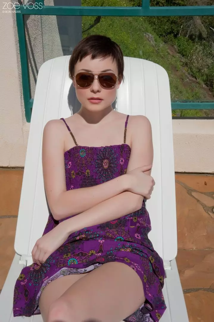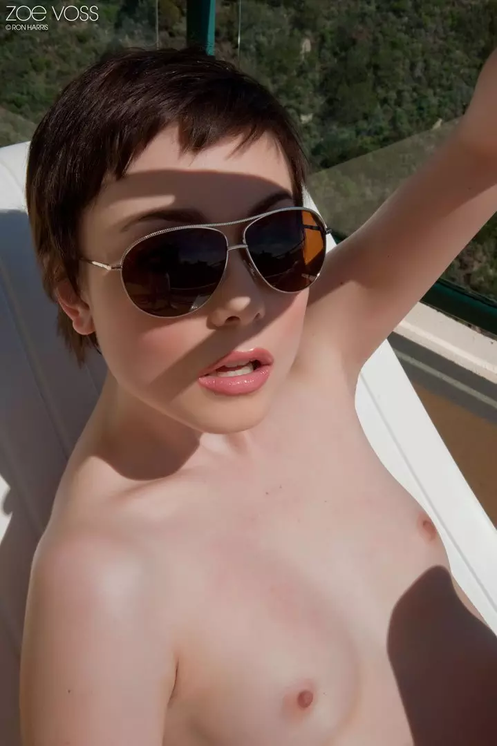 Очаровательная темноволосая девка Zoe Voss принимала солнечную ванну когда попала в камеру — Zoe Voss