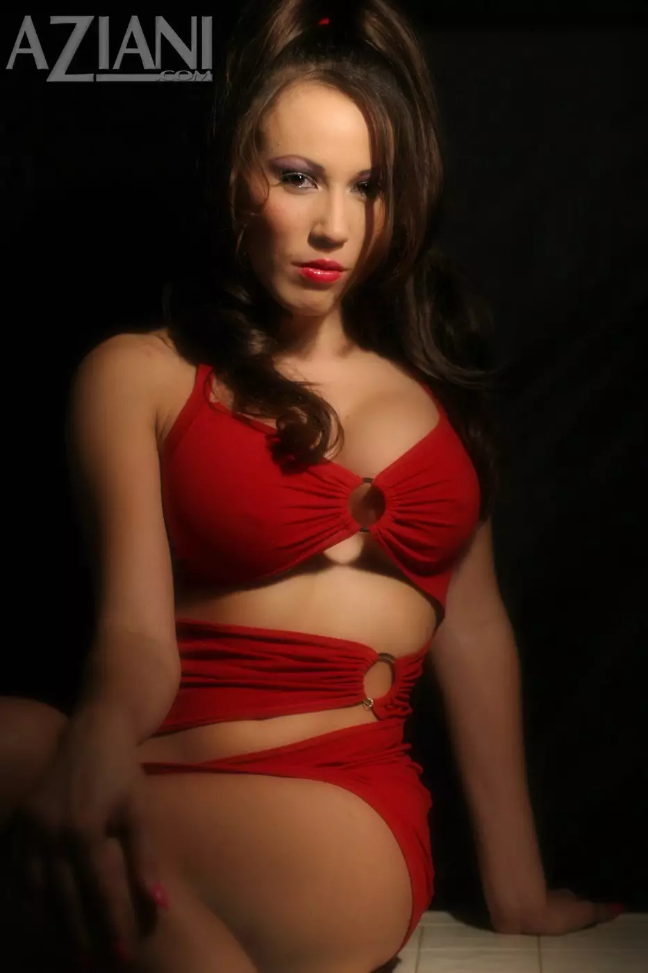 Гламурная брюнетка Layla Rivera, одетая в потрясающее красное платье, демонстрирует безволосую киску — Layla Rivera