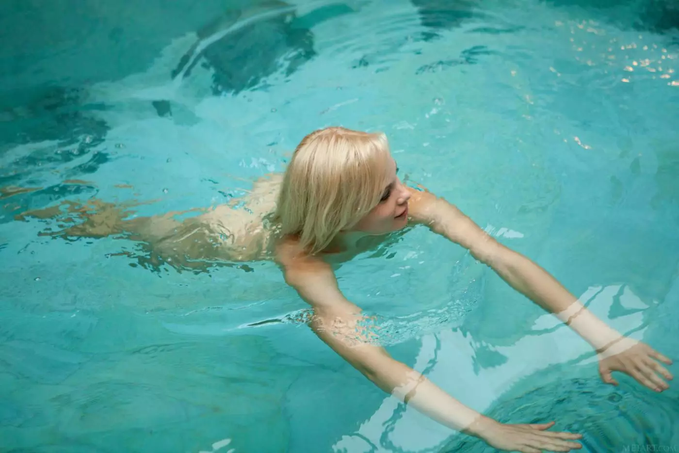 Красивая блондинка Feeona A плавает обнаженной в бассейне и позволяет посмотреть на ее киску — Feeona A