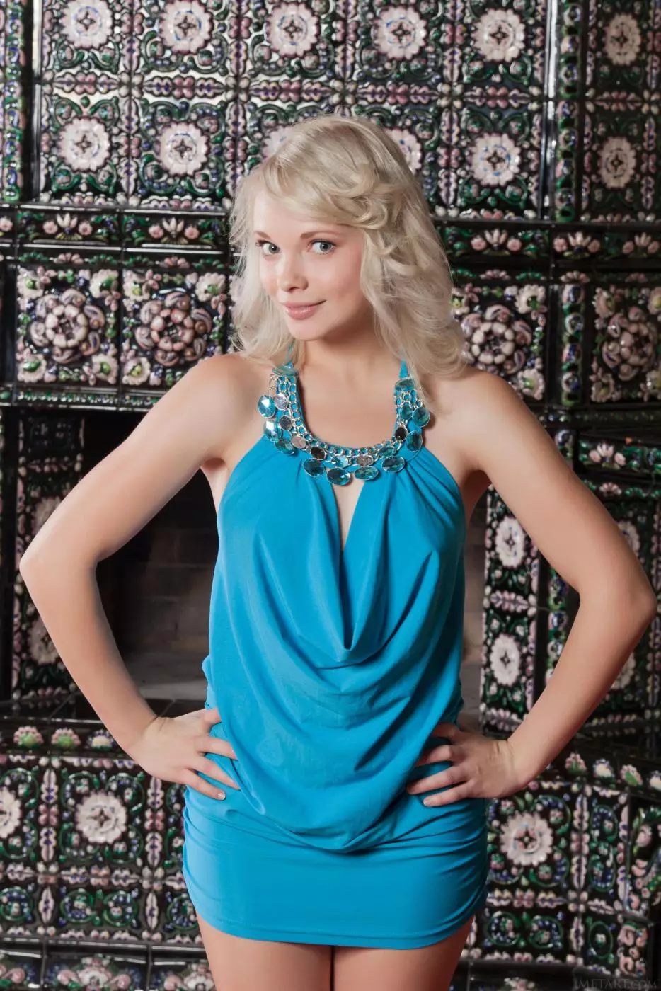 Милая юная блондинка Feeona A снимает платье — Feeona A