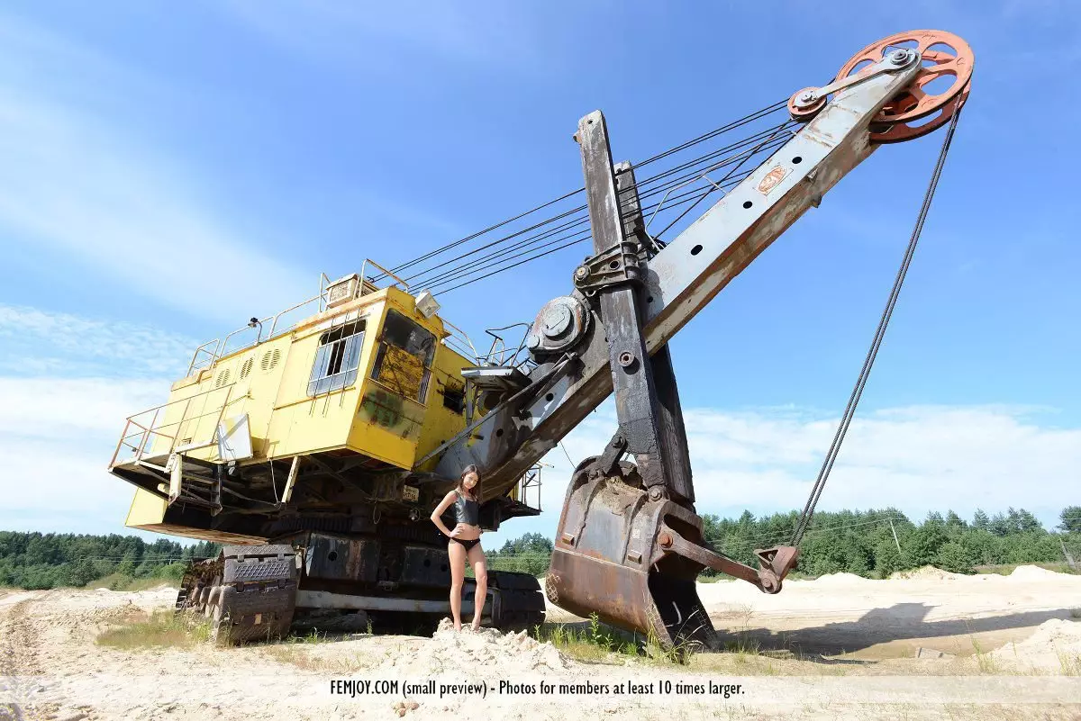 Развратная малышка Foxi Di показывает свою фантастическую молодую бритую киску на стройке — Foxi Di